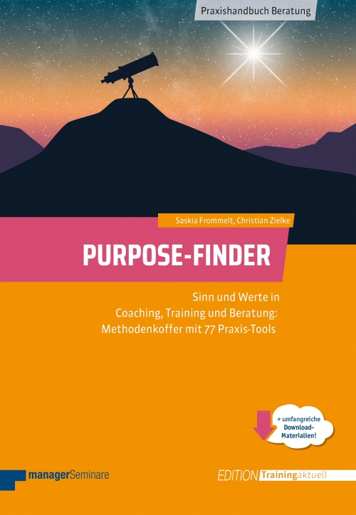 Ein zentrales Thema in der Beratung ist die Frage, wie Teilnehmende einen klaren Zugang zu ihren Lebenszielen, Werten und Stärken finden können. Das Buch „Der Purpose Finder – Sinn und Werte in Coaching, Training und Beratung“ von Saskia Frommelt und Christian Zielke gibt darauf mit einem Methodenkoffer von 77 praxisnahen Tools überzeugende Antworten.